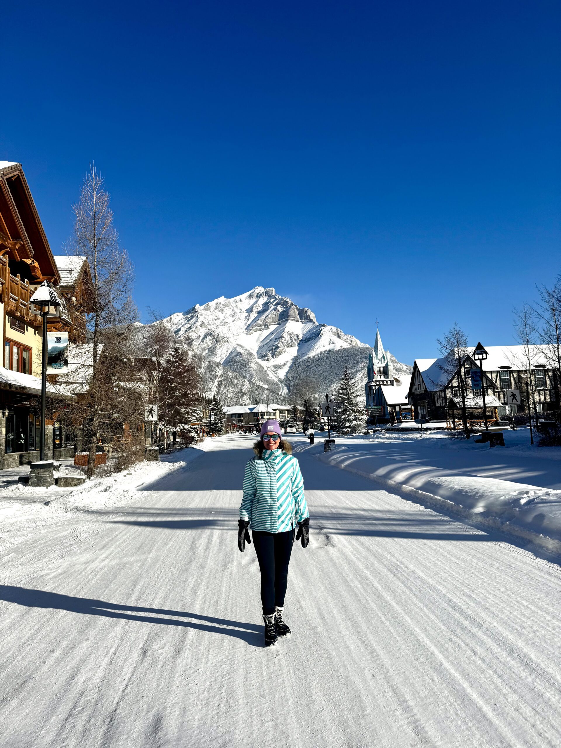 Banff Avenue must have one of the most spectacular “main street” backdrops in the world. Just make sure you pack proper snow boots with grip, we had plenty of snow underfoot!
